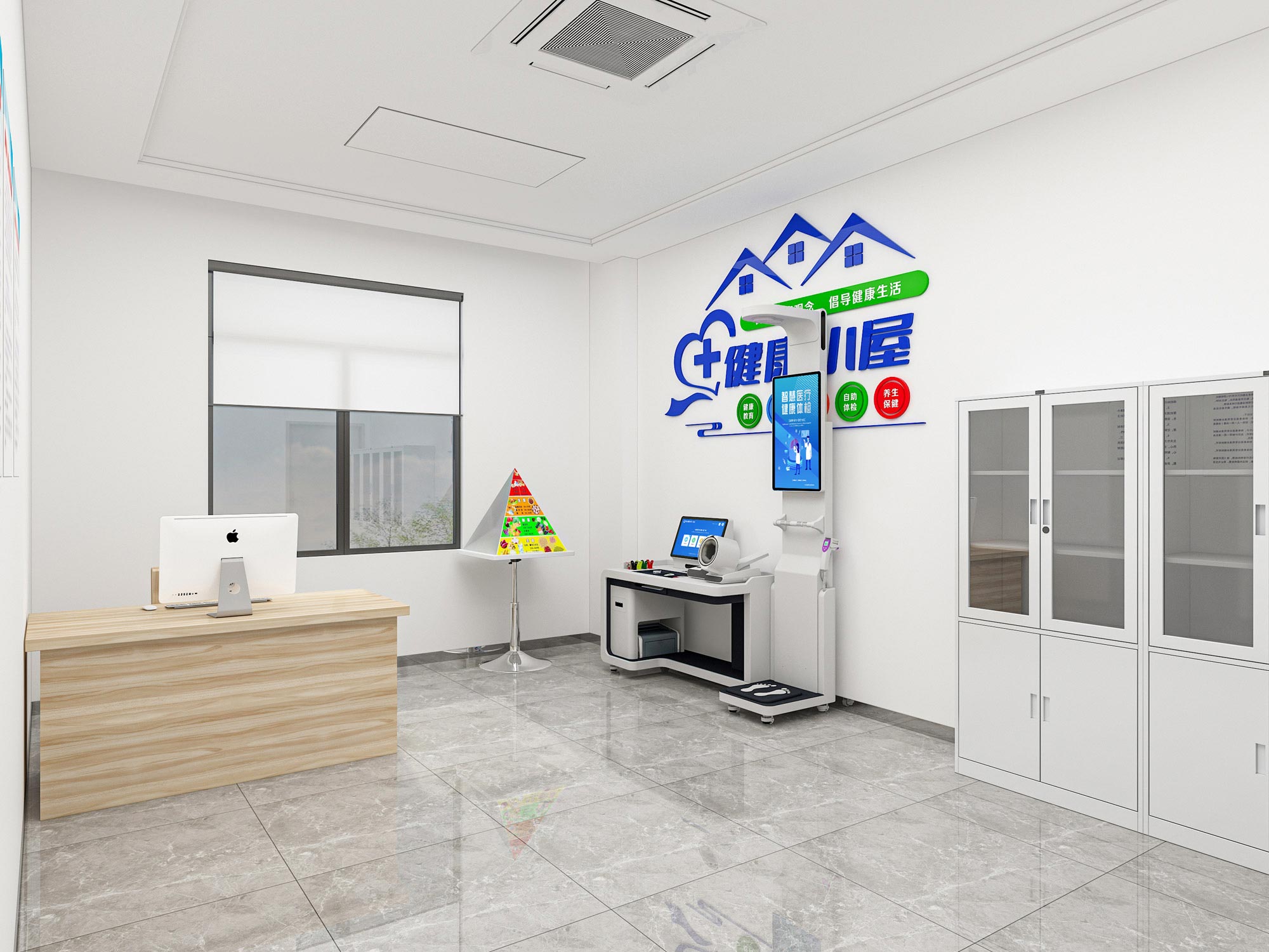 健康小屋3D场景效果 在当今社会,随着科技的迅猛发展和人们对健康管理需求的不断提升,传统的医疗服务模式正逐步被创新的医疗设施所取代。健康小屋作为新兴的医疗服务形式,不仅提供了先进的技术支持,还通