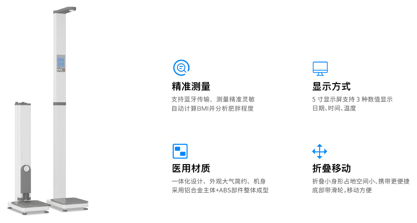身高体重测量仪具备秒级速度、实时测量功能,智能语音播报,操作便捷,每小时可高效测量480人,适用于大规模体检场景。