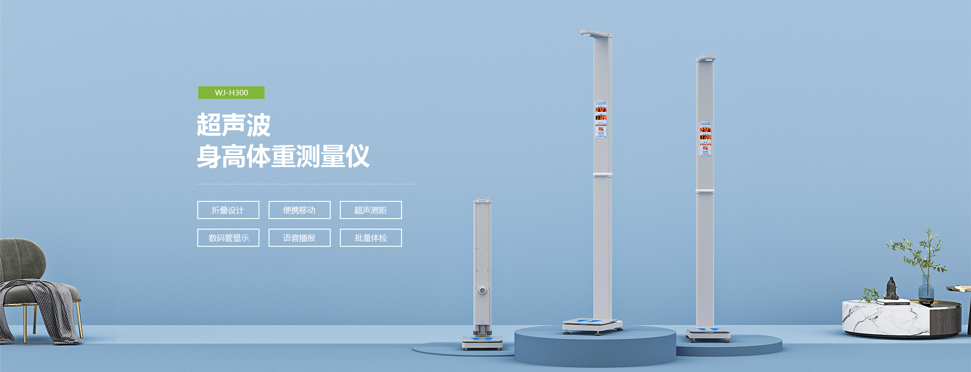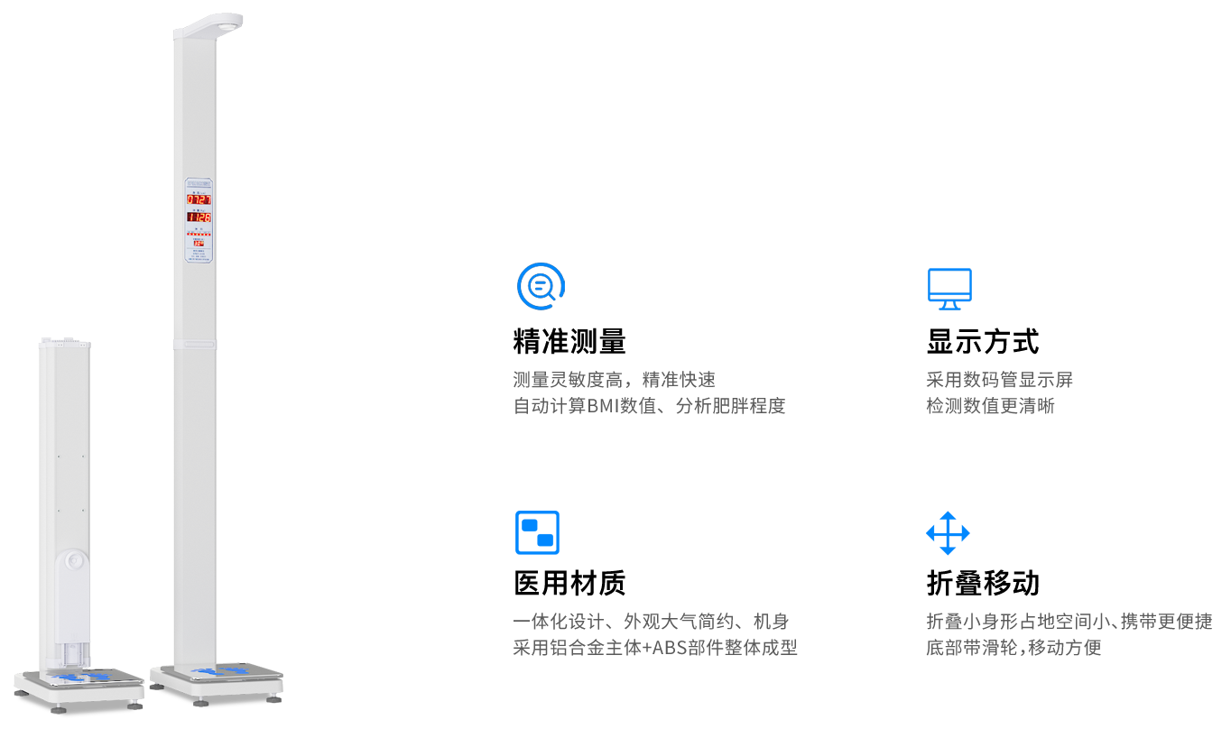 身高体重测量仪采用超声波测量技术,便携精准,数码管显示,语音播报,可移动、可折叠,多功能一体化测量。